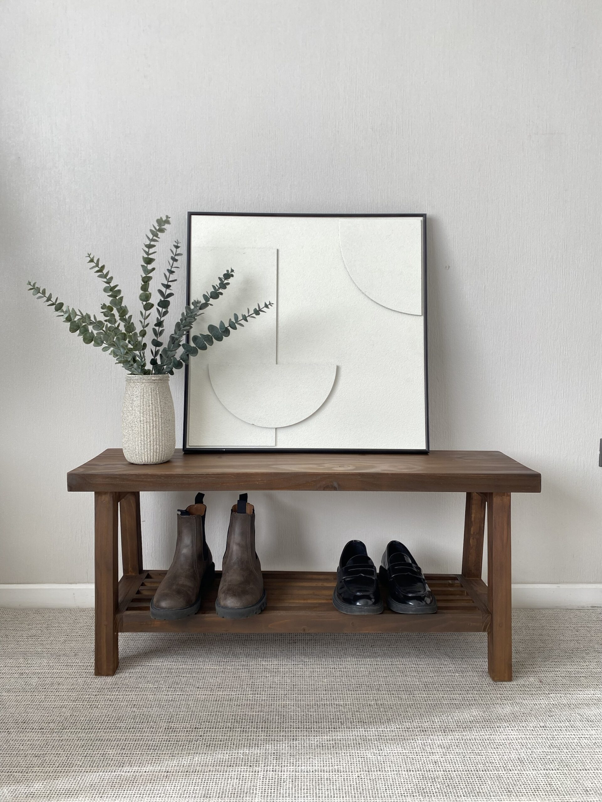 Banqueta con repisa interior para zapatos
